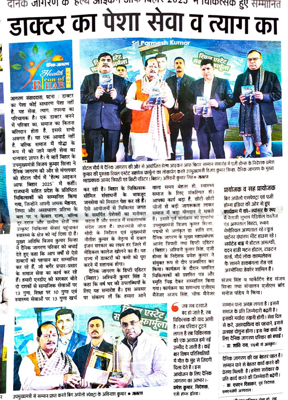 डॉक्टर का पेशा सेवा व त्याग का प्रतीक: ‘हेल्थ आइकन ऑफ बिहार 2025’ में चिकित्सकों का सम्मान